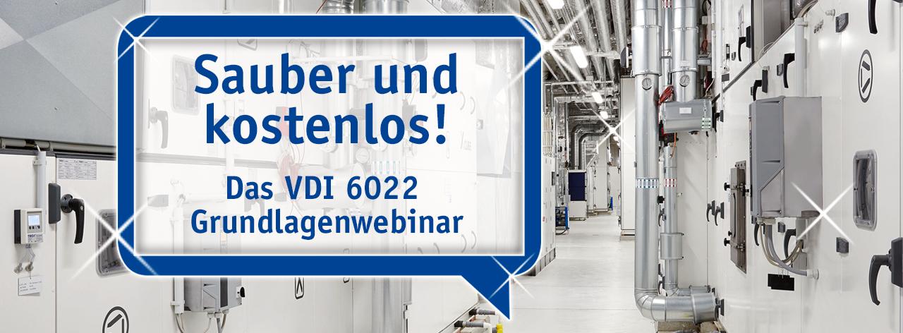 In einem halbstündigen kostenlosen Web-Seminar erhalten Sie einen Überblick über die wichtigsten Inhalte der VDI 6022 inklusive der Neuerung der aktuellen Version von Januar 2018.